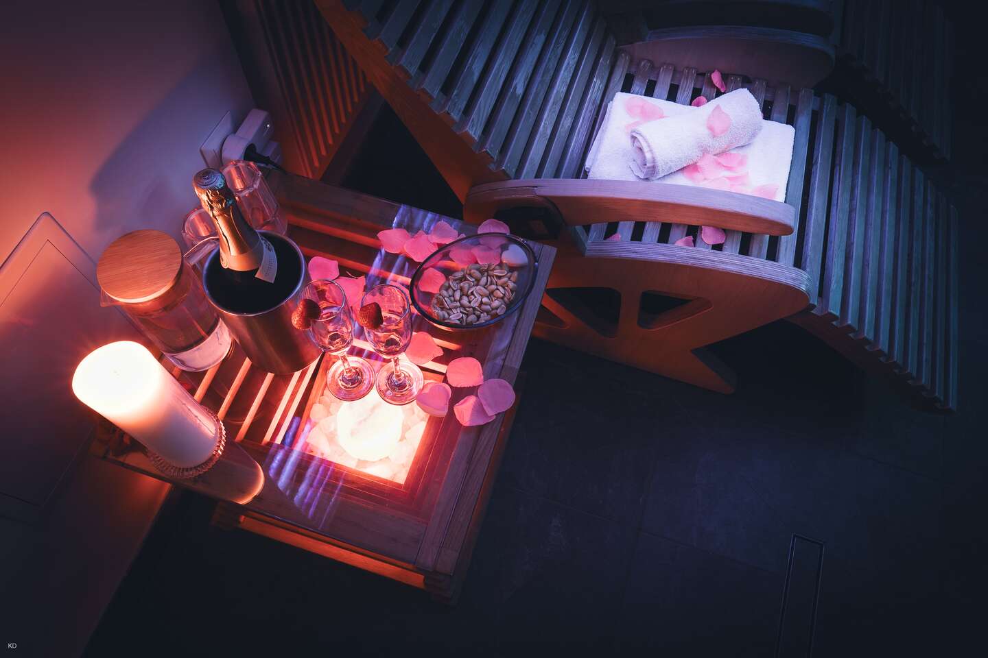 Doprajte si výnimočný relax v novootvorenom TOPsaun Wellness & SPA – len vy dvaja a 2 hodiny nerušeného súkromia. Vychutnáte si luxusnú vírivku, liečivú saunu podľa výberu, aromaterapiu, infra ležadlá a blahodarnú soľnú terapiu. Celý zážitok dotvorí fľaša vychladeného šampanského! Doprajte si oddych, ktorý si zaslúžite.