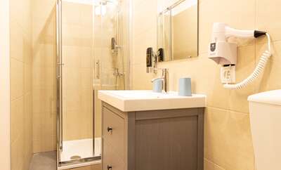 Moderná, plne vybavená kúpeľňa má buď vaňu alebo sprchovací kút, WC a sušič vlasov. Čo sa týka komunikácie, k dispozícii je telefón s priamou voľbou a bezplatné pripojenie na internet.