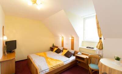 Vychutnajte si elegantný viedenský štýl a komfort dvojlôžkových izieb, ktoré sú vybavené manželskou posteľou veľkosti King. Okrem nej sa v nich nachádza aj TV s plochou obrazovkou a písací stôl. Príjemný komfort doplňuje čajový a kávový servis.