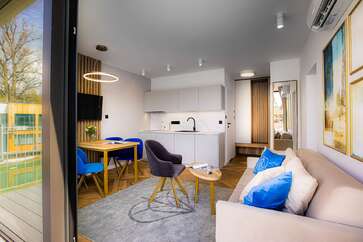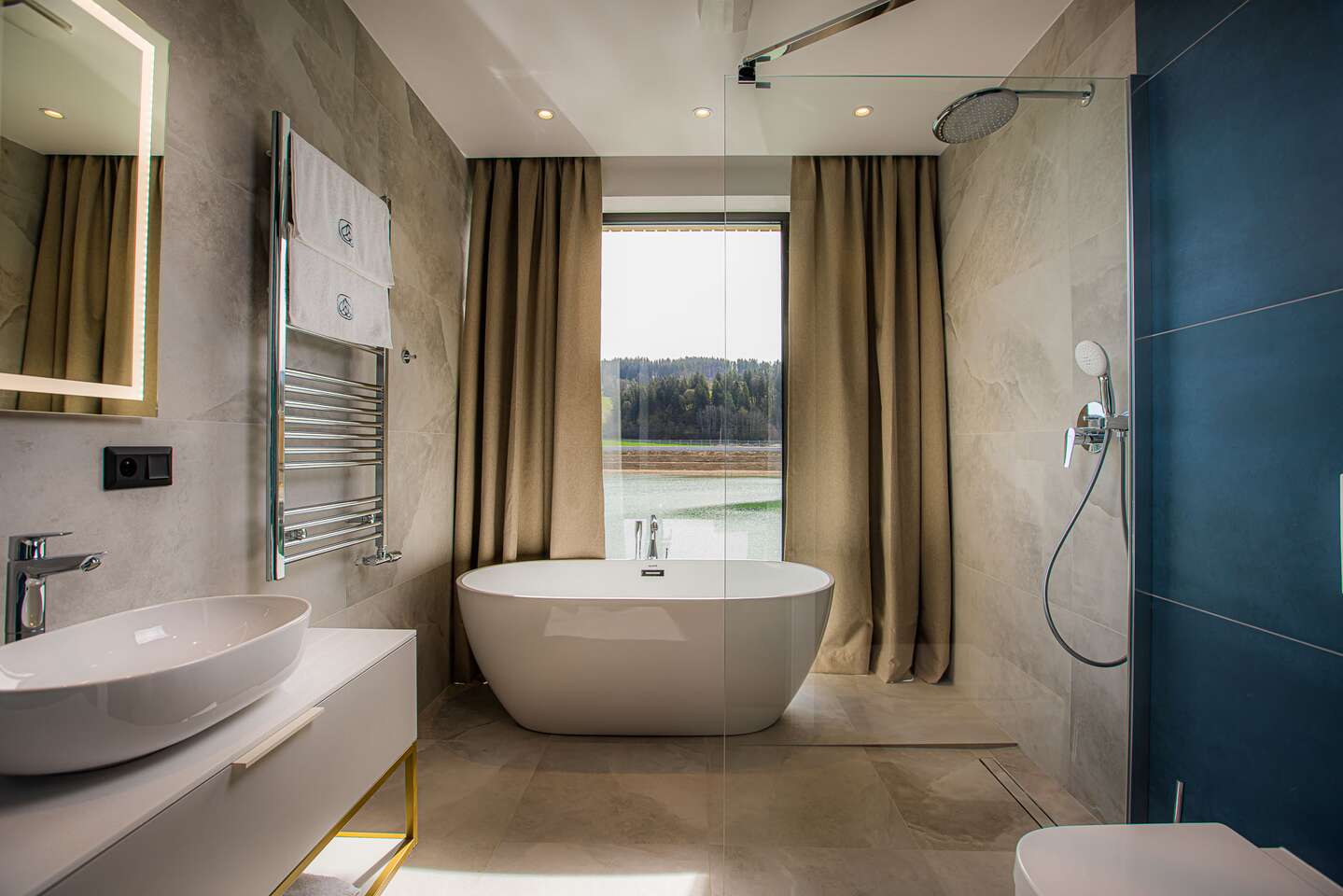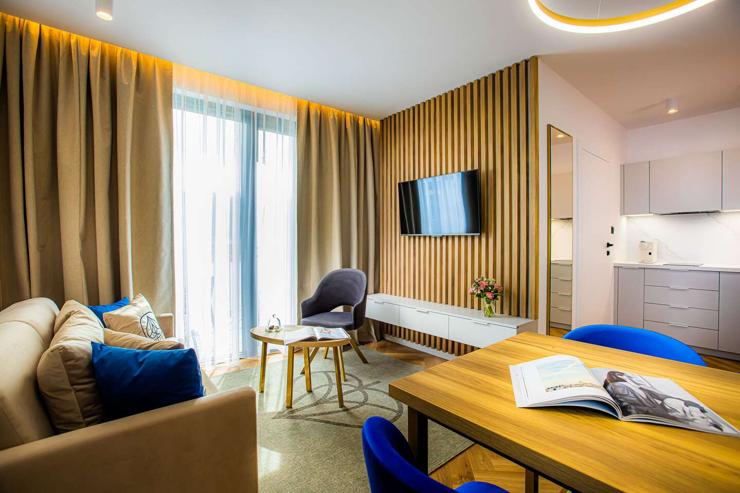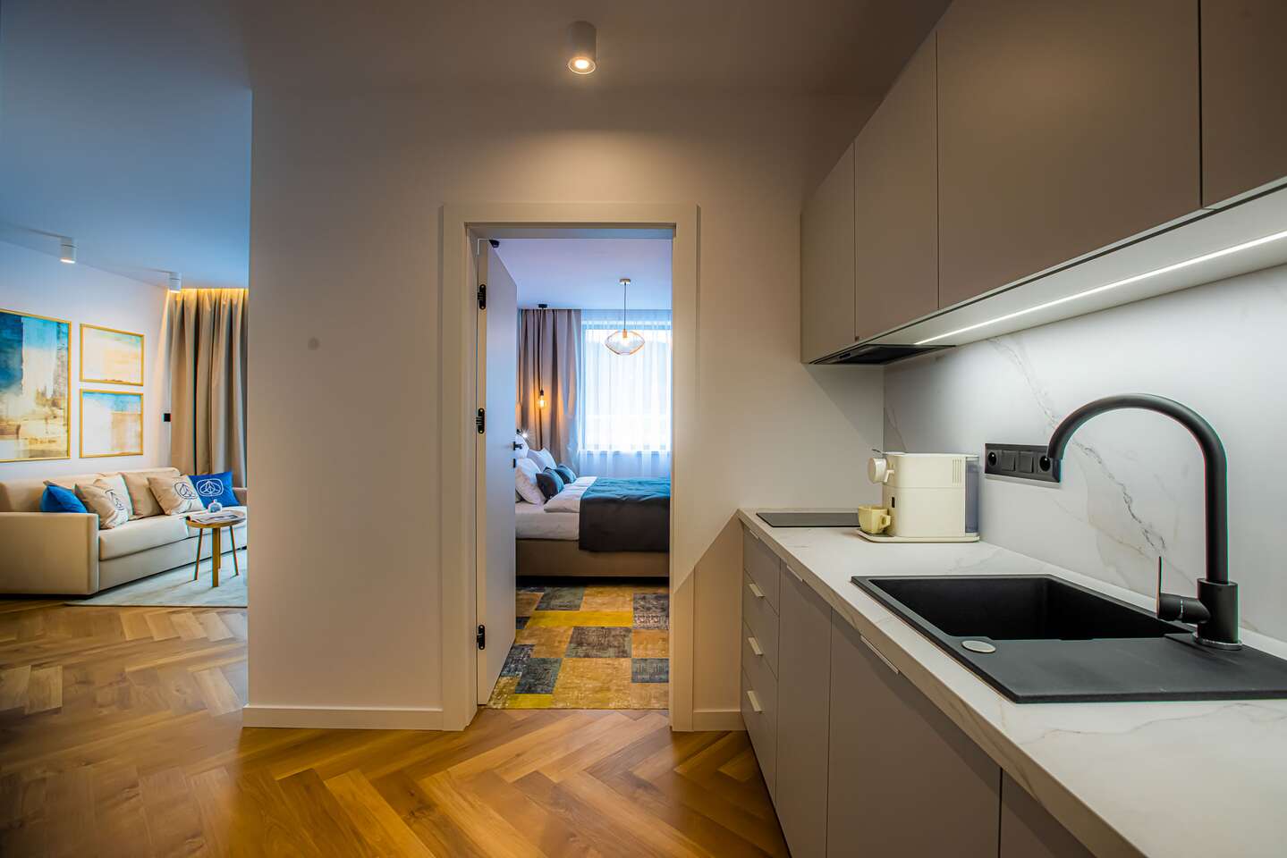 Každý apartmán je vybavený manželskou posteľou, rozkladacím gaučom s kvalitným matracom, plne zariadenou kuchyňou s kávovarom, TV, klimatizáciou a samozrejme Wi-Fi pripojením i bezplatným parkovaním. V kúpeľni nájdete mäkké uteráky, sušič na vlasy a toaletné potreby, pričom apartmán Crystal Lake View zaujme aj voľne stojacou vaňou s výhľadom na jazero – ideálnou na romantický večer.