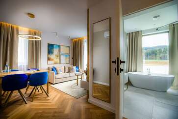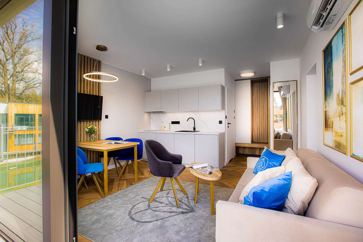 V Tilia Resorte si môžete vybrať z šiestich typov apartmánov, prispôsobených rôznym predstavám o dokonalom oddychu. Apartmány Sunset Lake View a Crystal Lake View ponúkajú balkón s nádherným výhľadom na jazero, zatiaľ čo Sunset Lake Swim a Crystal Lake Swim majú vlastnú terasu s priamym vstupom do vody. Ak hľadáte viac súkromia a ticha, ideálnou voľbou budú Green Harmony View alebo Green Harmony Garden, ktorý má aj bezbariérový prístup – vhodný pre hostí so zníženou mobilitou.