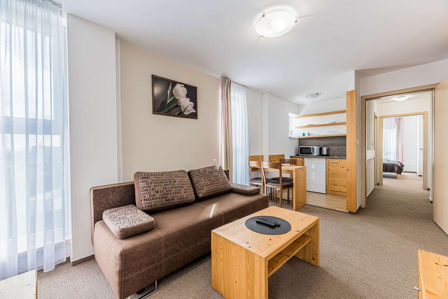 Po dobrom spánku v rodinnom apartmáne Belveder môžete vyraziť na túru. S prvými lúčmi vystúpite do kopcov uprostred krásnej prírody. Ešte pohodlnejšie to budete mať na lanovku - len 350 m od ubytovania! A odmena po turistike? Zaslúžený relax vo wellness alebo pivných kúpeľoch, navštíviť môžete však aj blízke aquaparky. Zostavte si dovolenku s rodinou vo Vysokých Tatrách presne podľa seba!