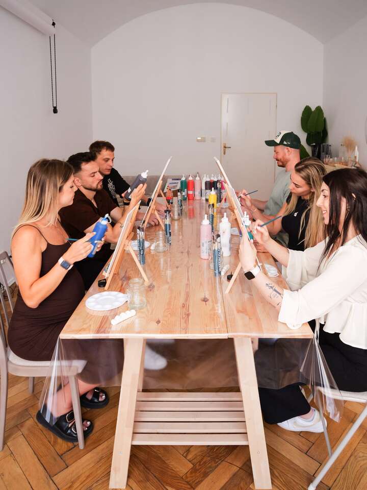 V cene zážitku sú zahrnuté všetky výtvarné pomôcky, plátno, farby, štetce, zástera a navyše aj neobmedzené Prosecco alebo varené víno a drobné občerstvenie. Vybrať si môžete motív podľa nálady – môžete si priniesť vlastnú inšpiráciu alebo sa poradiť s lektorkou, ktorá vám ochotne pomôže zrealizovať váš nápad.