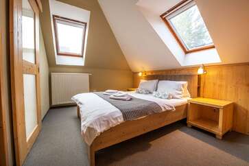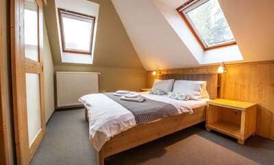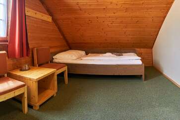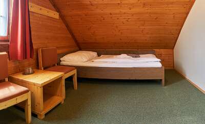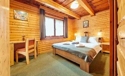 Útulne zariadená izba v drevenom štýle. V izbe sa nachádza manželská posteľ, 1x jednolôžková posteľ alebo poschodová posteľ a kúpeľňa s toaletou. Detská postieľka v tomto type izby na vyžiadanie.