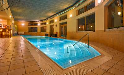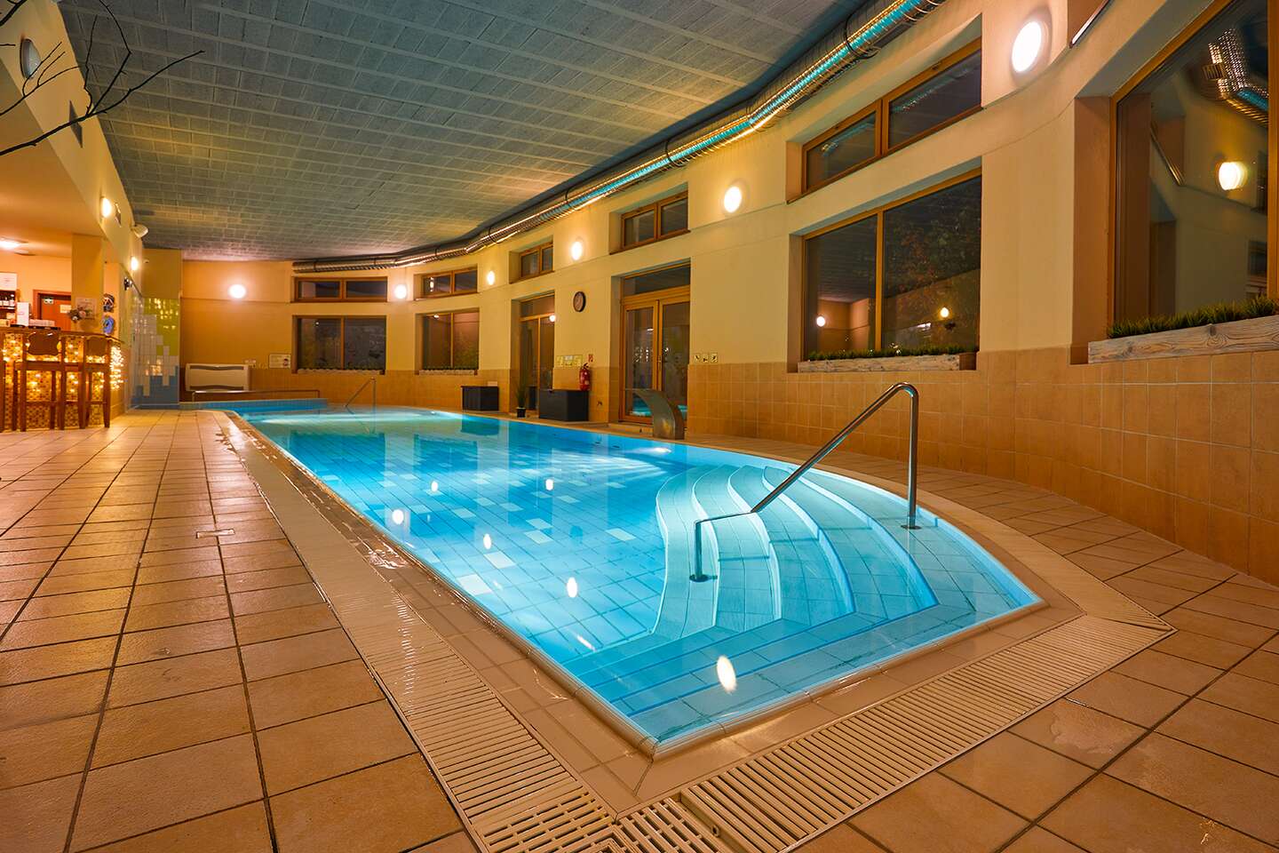 Súčasťou wellness centra sú kryté bazény pre celú rodinu, kde si každý príde na svoje. Kým si vy budete užívať relaxačné osvieženie v priestrannom bazéne, pre najmenších hostí je pripravený detský bazén s hĺbkou a teplotou vody prispôsobenou ich potrebám.