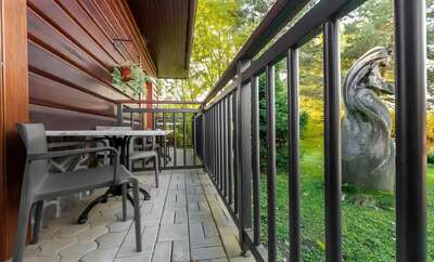 Útulne zariadená izba v drevenom štýle. Má 2 spálne oddelené menšou obývačkou, v jednej spálni sa nachádza manželská posteľ a v druhej spálni sú dve jednolôžkové postele. Kúpeľňa s toaletou. Detská postieľka na vyžiadanie. Dve izby tohto typu sú s terasou.