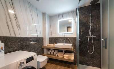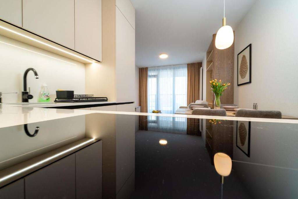 Apartmán je vybavený veľkou manželskou posteľou a rozkladacou pohovkou, čo zaručuje komfort aj pri dlhších pobytoch. K dispozícii je súkromná kuchyňa s modernými spotrebičmi, umývačka riadu, kávovar a TV s plochou obrazovkou. Nechýba ani klimatizácia, bezplatné WiFi a súkromné parkovanie. Na balkóne si môžete vychutnať rannú kávu s panoramatickým výhľadom na Bratislavu.