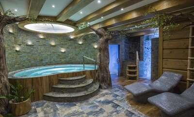 Rozprávkové prostredie miniSPA centra vám zaručí absolútny relax a na okamih vás prenesie do čarovného sveta mimo reality. Drevo a kameň dodávajú tomuto miestu jedinečný charakter. K dispozícii je vírivka s teplotou vody 36 °C a oddychová zóna. Fínska sauna povzbudí vašu imunitu a parná sauna očistí telo od toxínov, zlepší krvný obeh a látkovú výmenu.