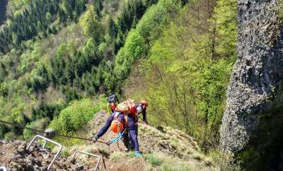 Z praxe vieme, že po oboznámení a predvedení, ako sa lezie po Via ferratách, zvládnu všetci účastníci Via ferraty od náročnosti A až po C. Čo predstavuje najťažšie úseky na ferrate Komín. Pre každý prípad bude mať horský sprievodca pri sebe lano, ktorým Vás v prípade potreby zaistí.