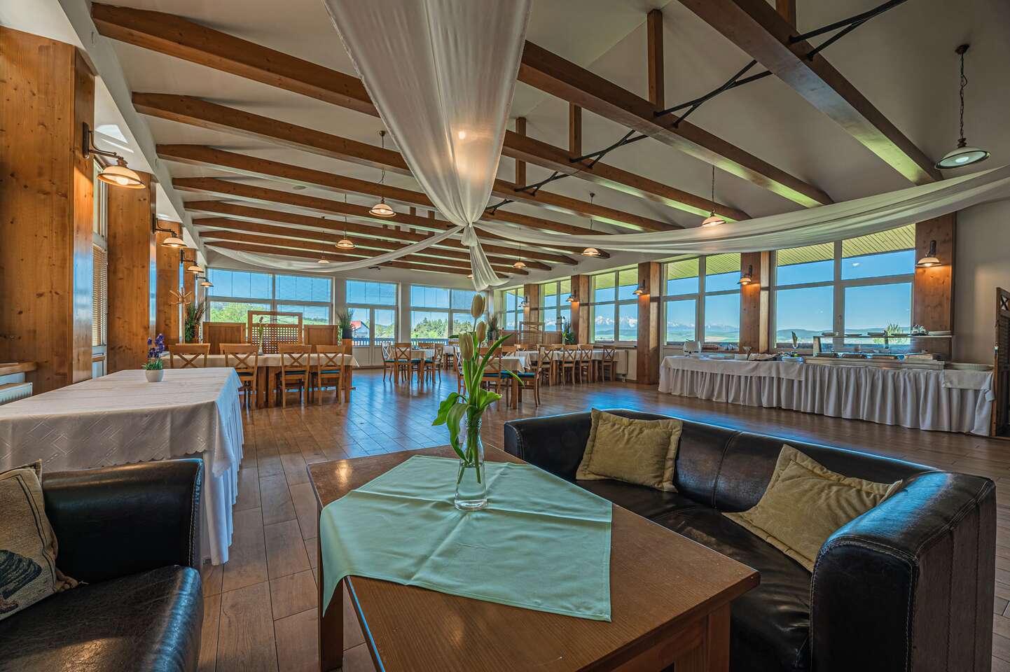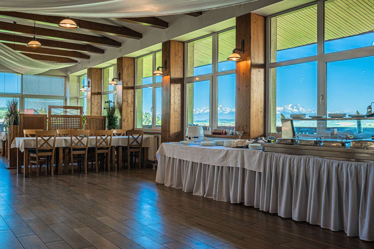 Hotelová reštaurácia ponúka široký výber jedál, od tradičných slovenských špecialít až po medzinárodnú kuchyňu. Hostia si pochvaľujú bohaté a chutné raňajky a večere.