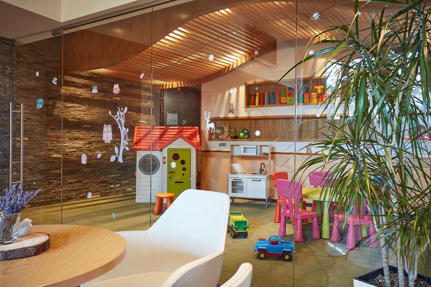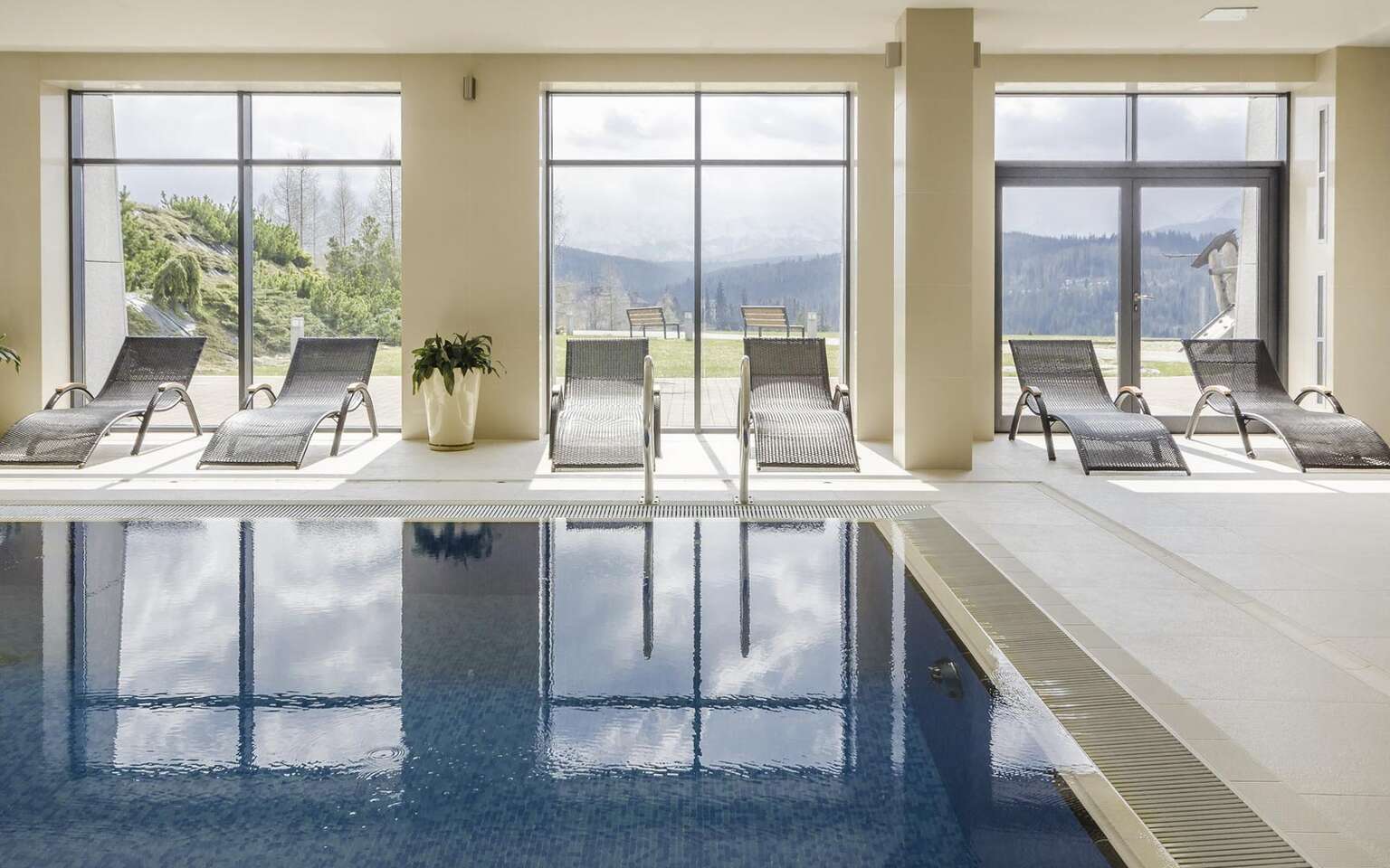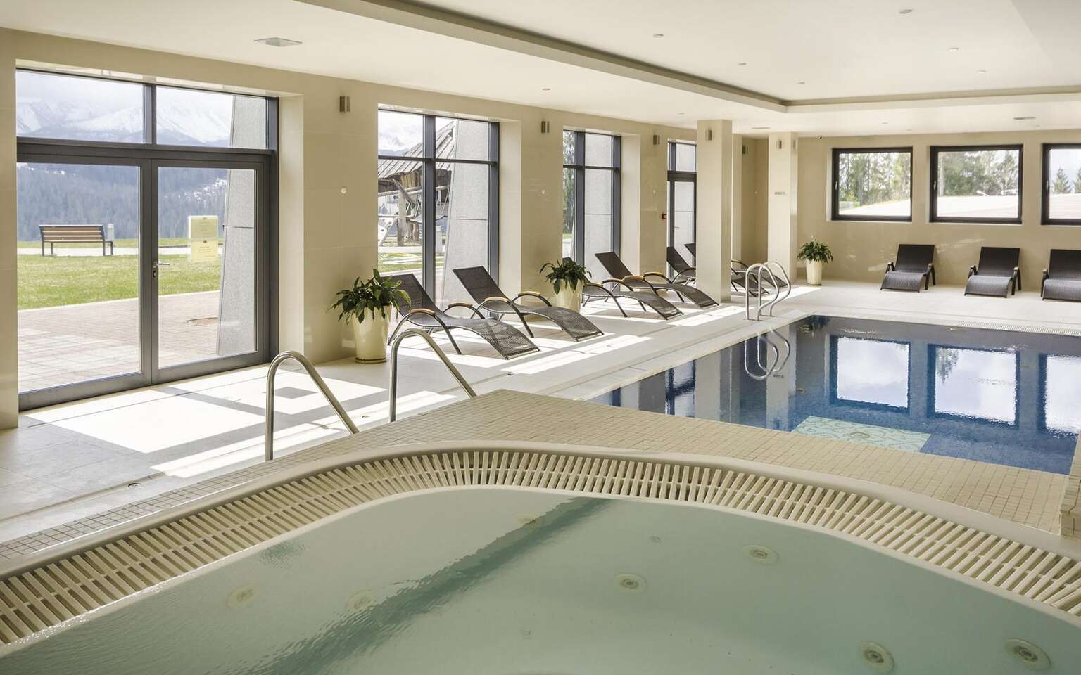 Po únavnom dni si oddýchnite vo wellness centre, kde sa môžete okúpať v bazéne, alebo si jednoducho ľahnúť na lehátko a vychutnať si krásny výhľad na Tatry.