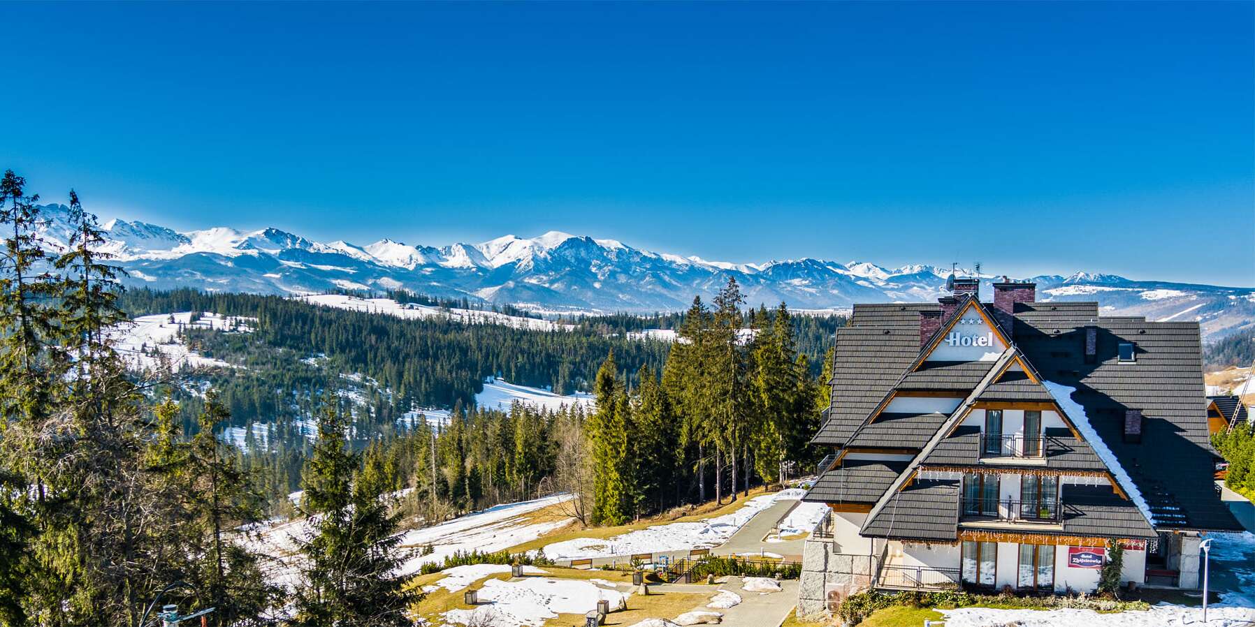Hotel Zbójnicówka sa nachádza v malebnej obci Bukowina Tatrzańska. Väčšina izieb má výhľad na poľské Tatry. Ak hľadáte skvelý odpočinok a pokoj v kombinácii s návštevou termálnych kúpeľov, ste na správnom mieste. Nádherné izby s ešte krajším výhľadom na Tatry. Jediné zariadenie s takýmto výhľadom v Poľsku.