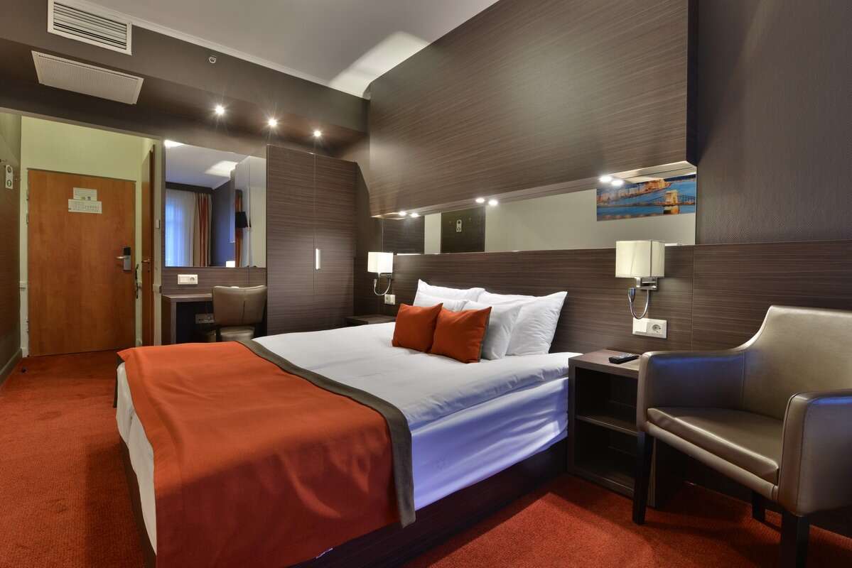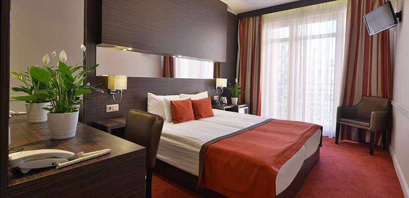 Hotel disponuje elegantne zariadenými izbami s moderným nábytkom, klimatizáciou, satelitnou TV, minibarom a WiFi pripojením. Každé ráno vás čakajú bohaté raňajky formou bufetu, kde si vychutnáte čerstvé pečivo, ovocie, teplé i studené jedlá. Izby sú tiché a pohodlné – ideálne na oddych po dni strávenom objavovaním mesta.