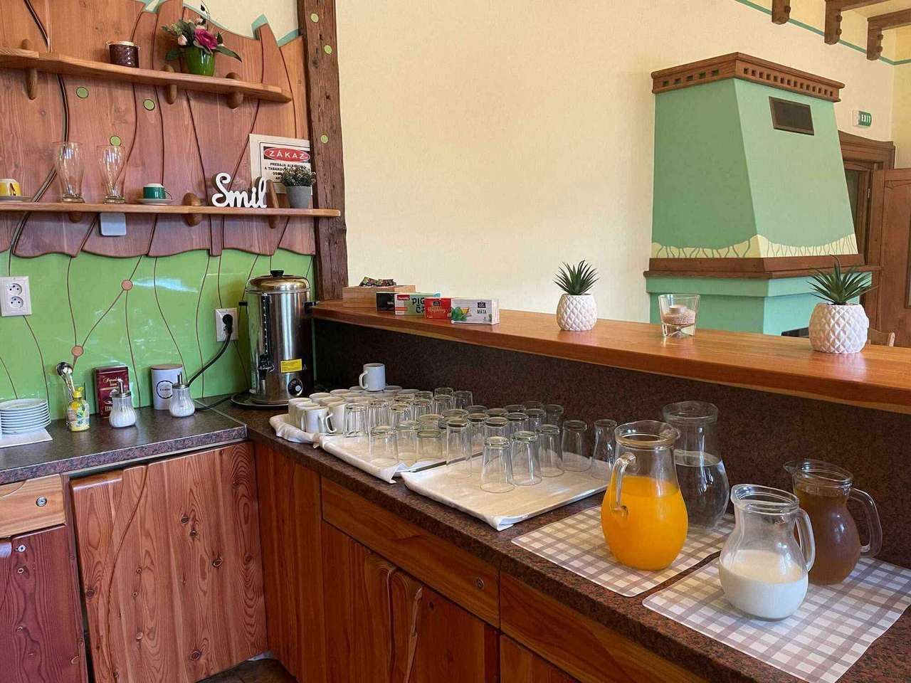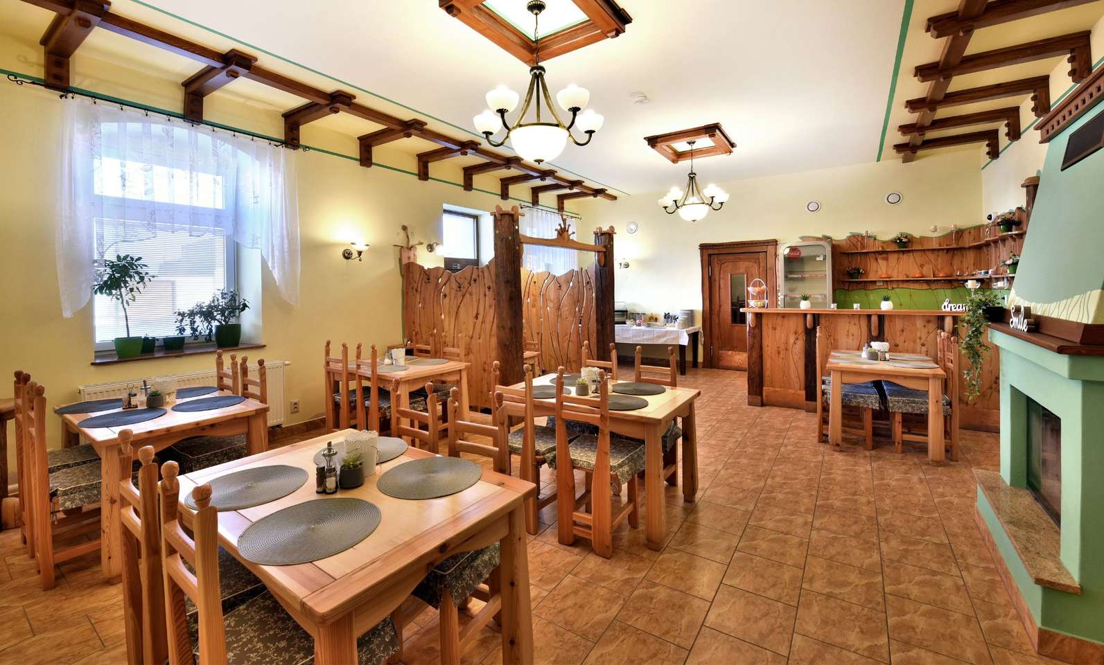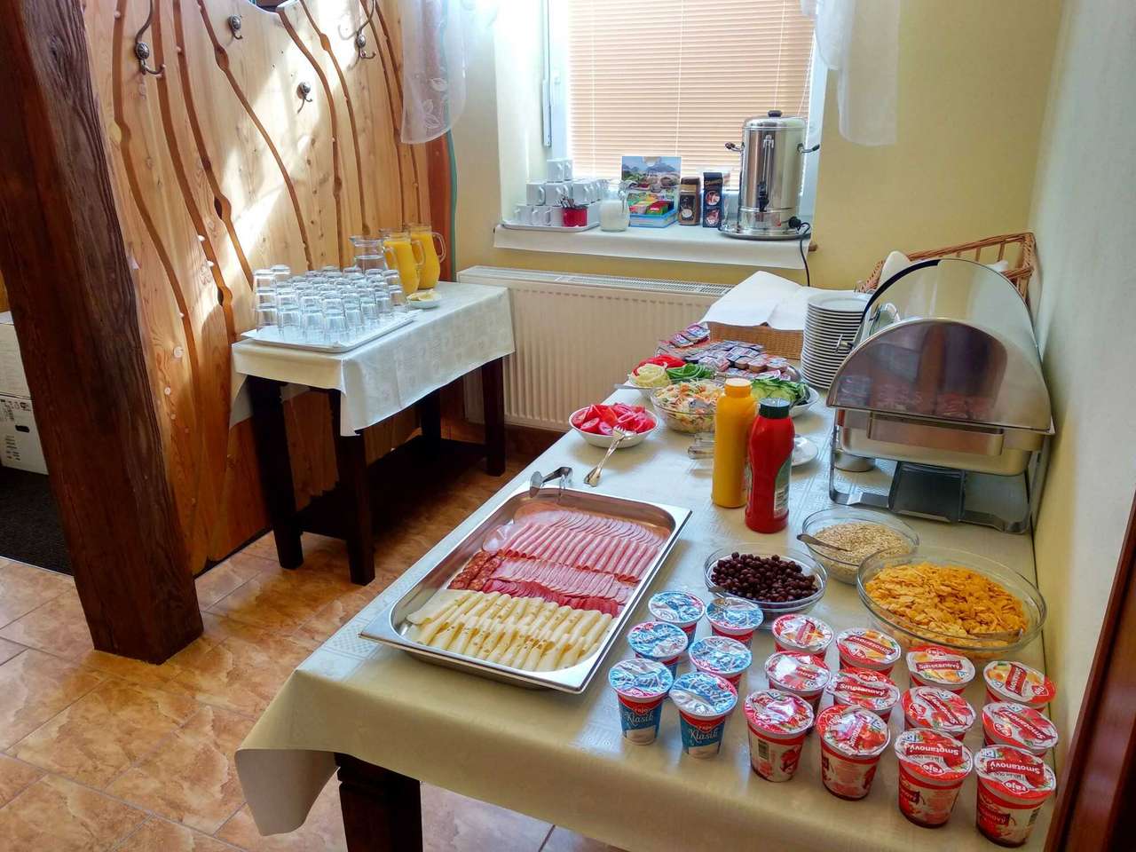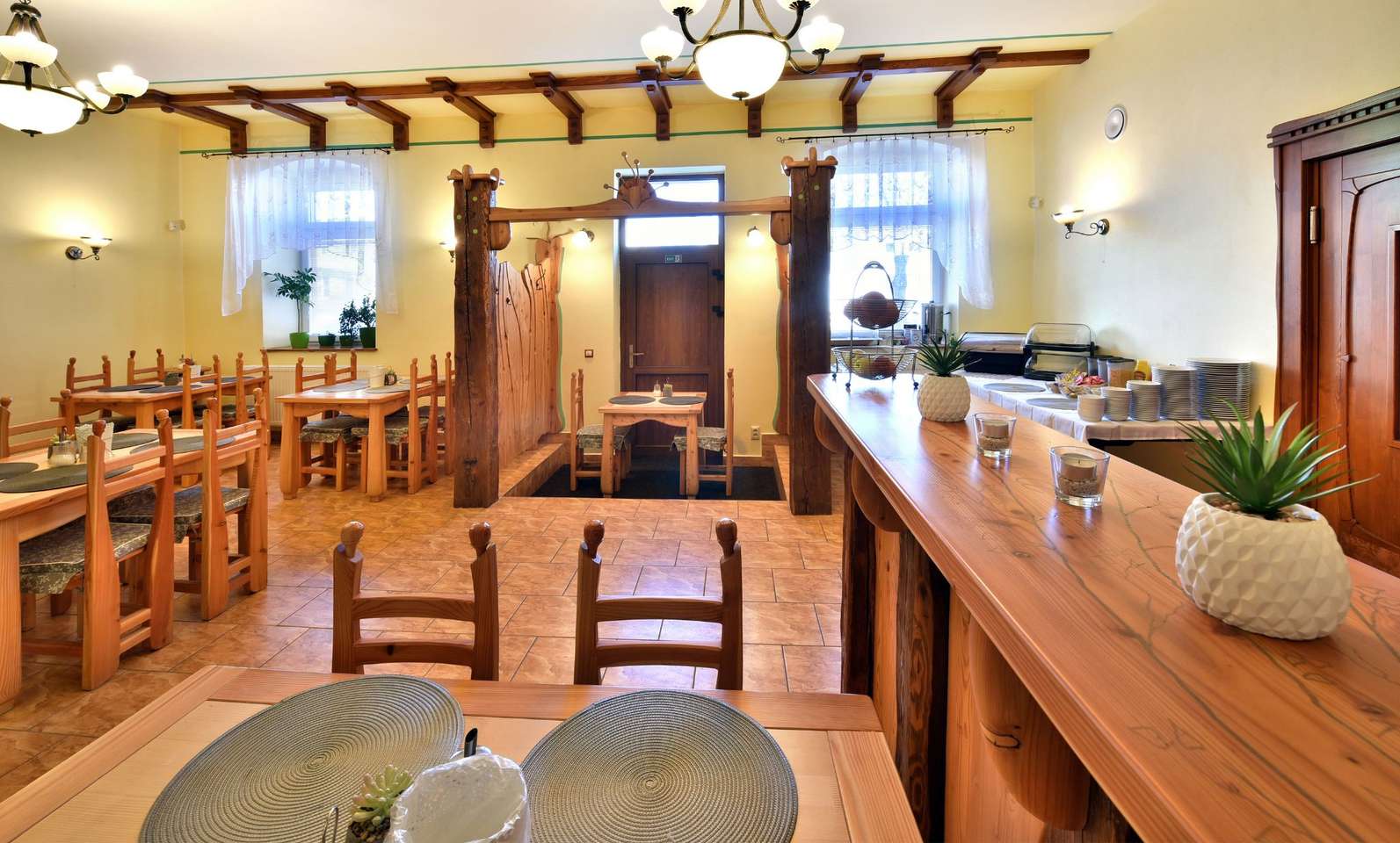 V penzióne sa nachádza útulná reštaurácia, kde sú hosťom podávané raňajky formou bufetu. Na výber je čerstvé pečivo, rôzne druhy syrov a šuniek, vajíčka pripravené na viacero spôsobov, čerstvé ovocie, jogurty, cereálie, sladké pečivo a džemy.