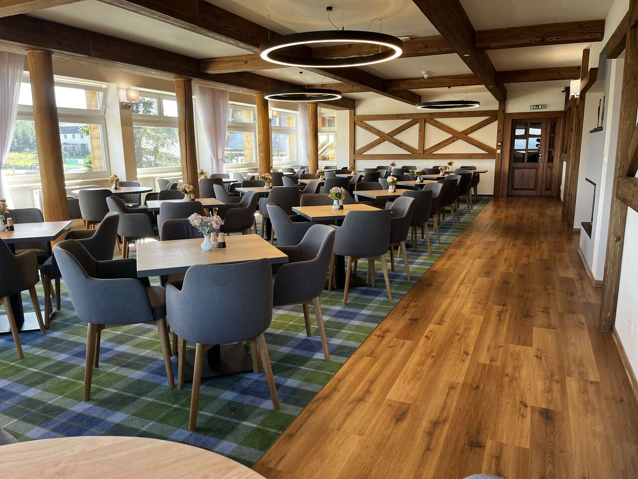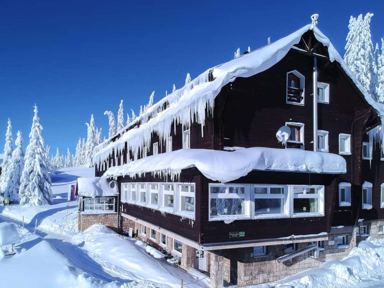 Hotelová reštaurácia v hlavnej budove ponúka široký výber tradičných jedál. Vo večerných hodinách funguje reštaurácia ako bar. V bare si príjemne posedíte pri obľúbenom drinku a budete obdivovať výhľady na okolie a hory.