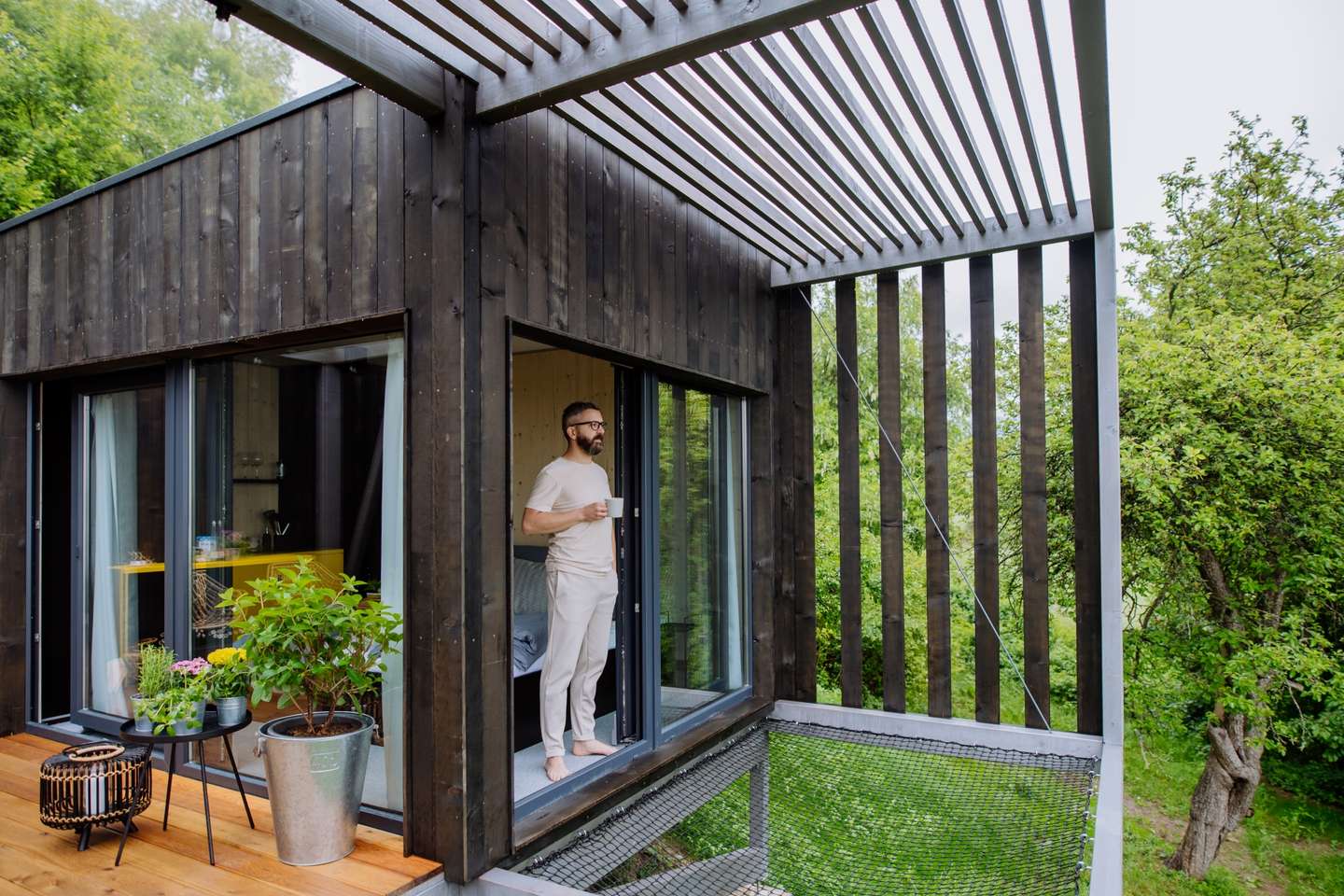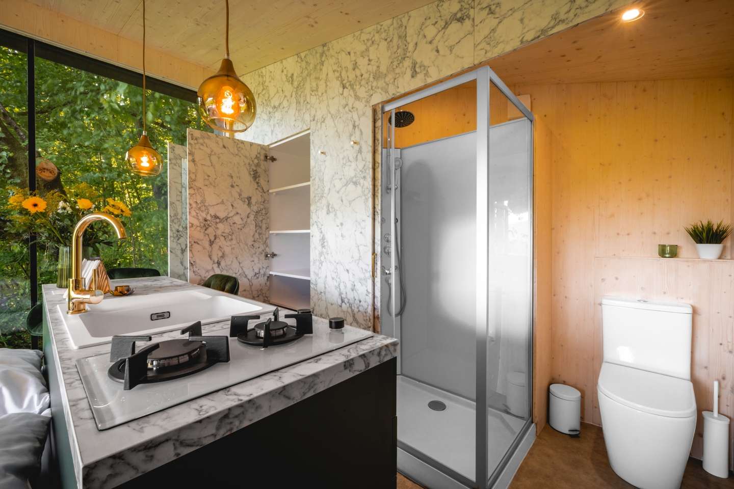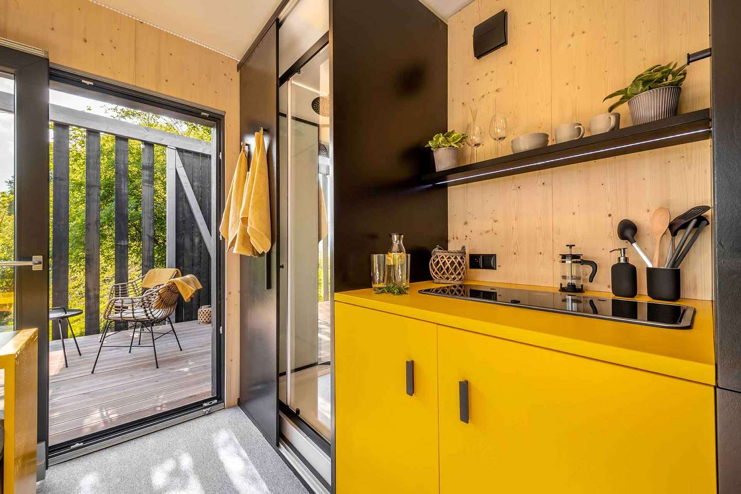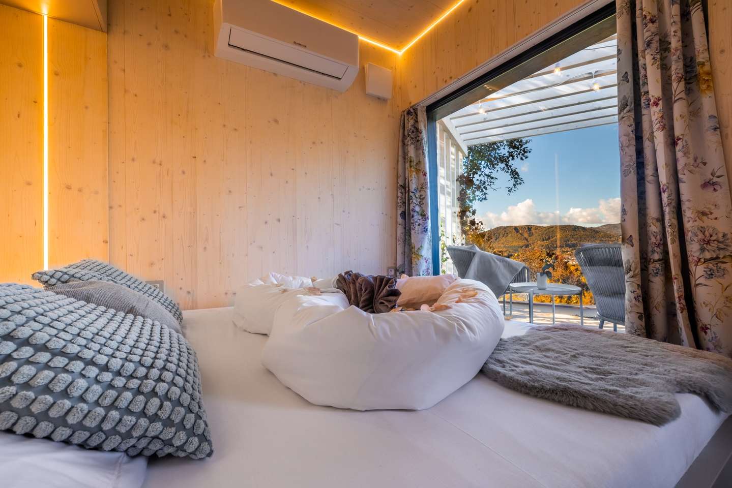 Najpokojnejšia z Kútic. Skrytá sa trochu hlbšie v lese, ponúka teda absolútne súkromie. Veľké francúzske okná vám umožnia sledovať východ slnka priamo z postele. Kutica 3 je ideálna pre tých, ktorí túžia po digitálnom detoxe a hlbokom oddychu.