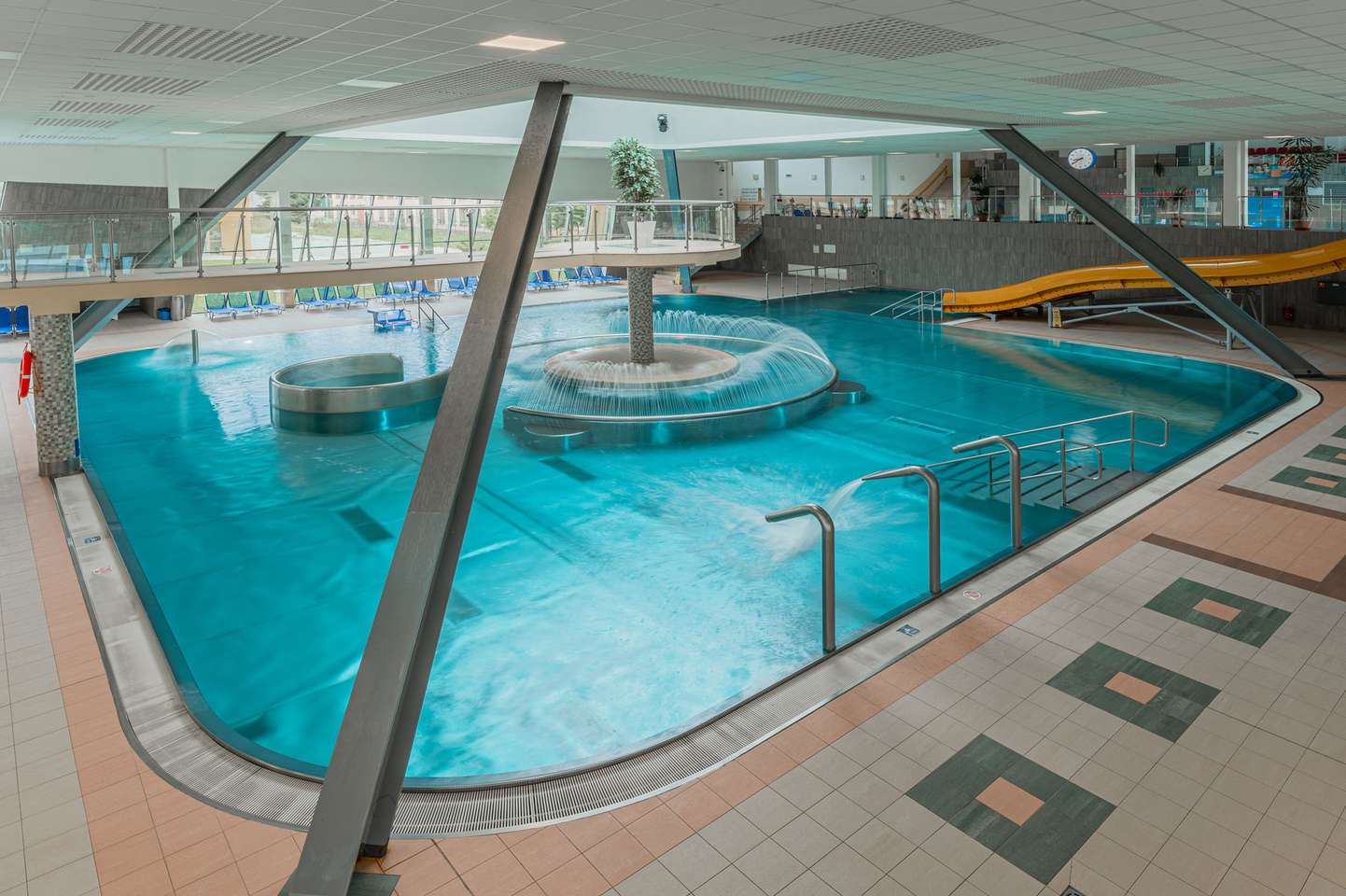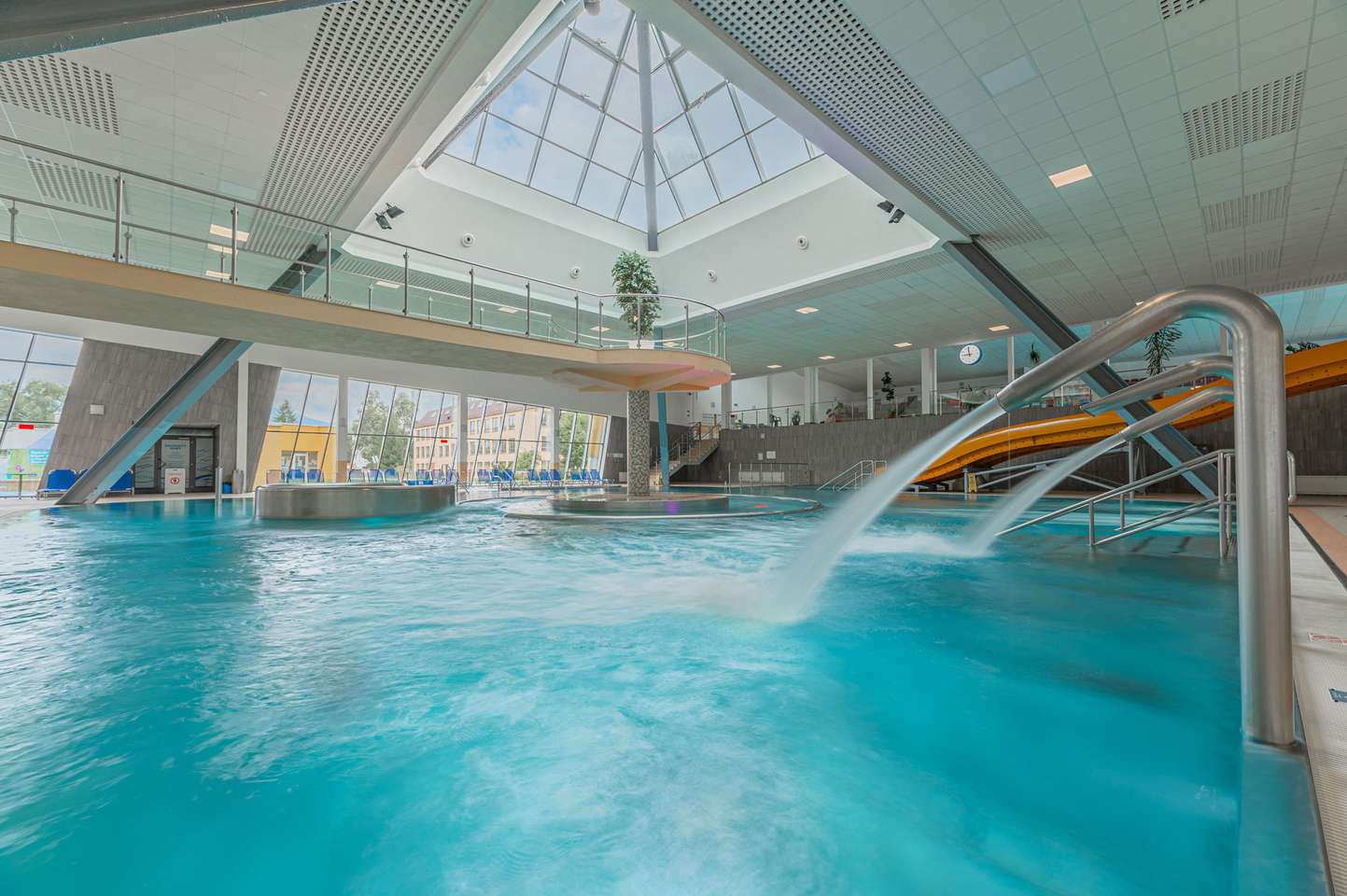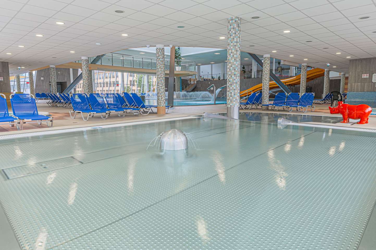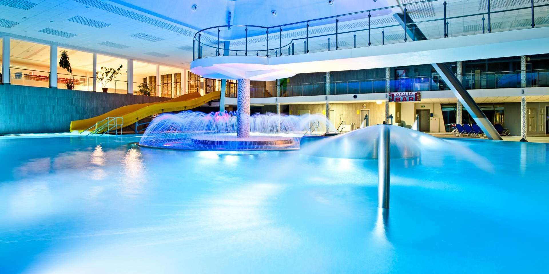 Súčasťou bazénu a jeho okolia sú bublinkovače, masážna lavica pre 6 osôb, 3 masážne sprchy, vodný hríb, 6 masážnych trysiek, divoká rieka, hojdací záliv, ostrov, 2 vírivé vane s teplotou vody 36 °C, 4 vyhrievané lavice, 200 lehátok, 2 fontánky s pitnou vodou , 2 tobogany, 2-šmykľavka NIAGARA a relaxačná terasa na opaľovanie v letnej sezóne.