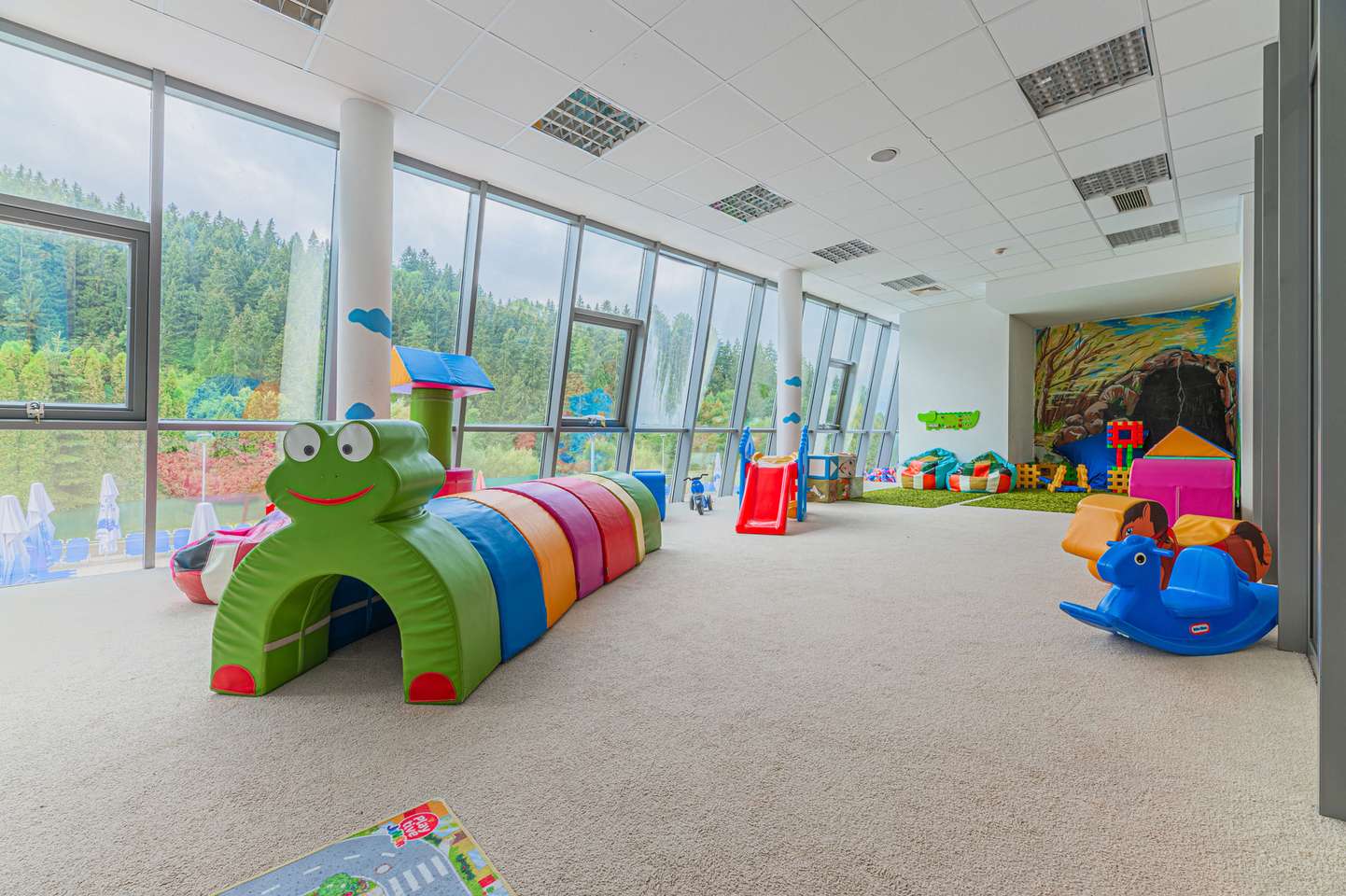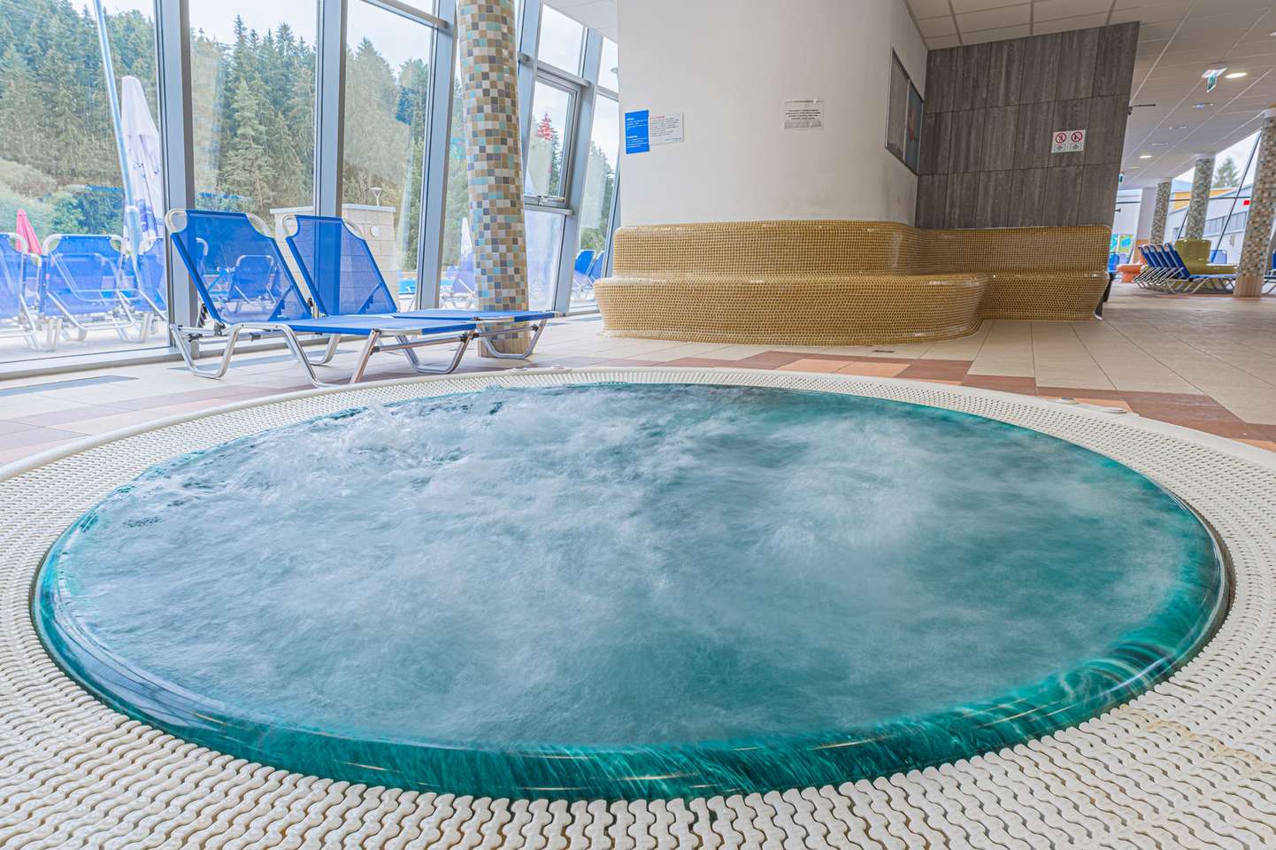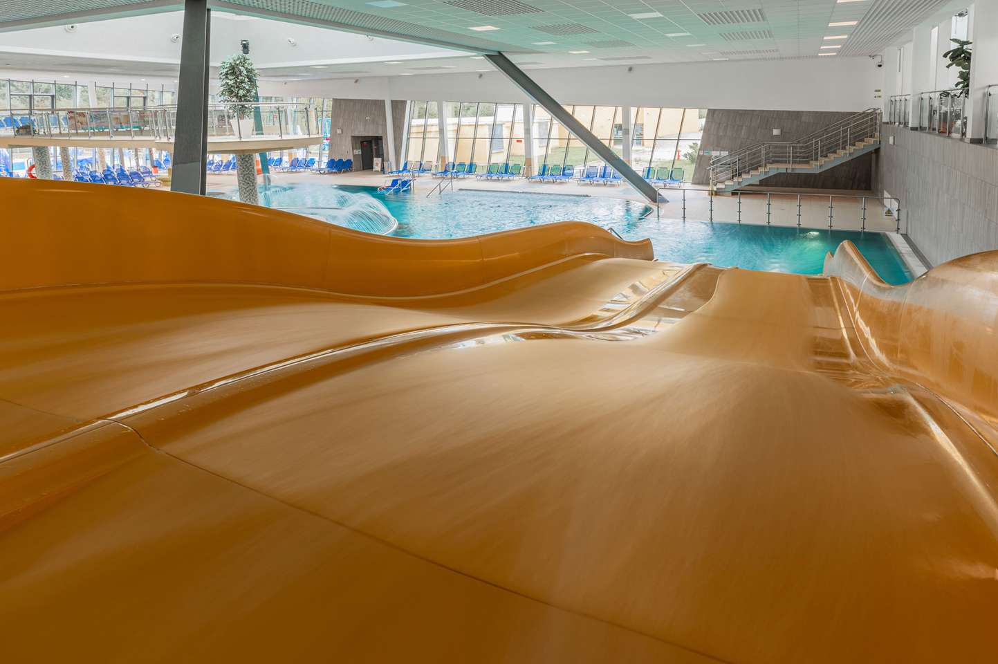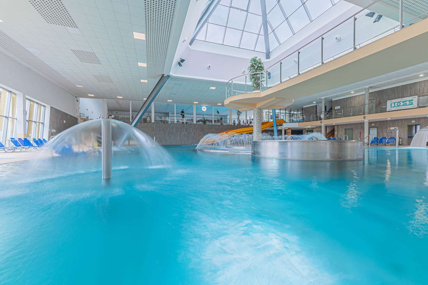 Súčasťou bazénu a jeho okolia sú bublinkovače, masážna lavica pre 6 osôb, 3 masážne sprchy, vodný hríb, 6 masážnych trysiek, divoká rieka, hojdací záliv, ostrov, 2 vírivé vane s teplotou vody 36 °C, 4 vyhrievané lavice, 200 lehátok, 2 fontánky s pitnou vodou , 2 tobogany, 2-šmykľavka NIAGARA a relaxačná terasa na opaľovanie v letnej sezóne.